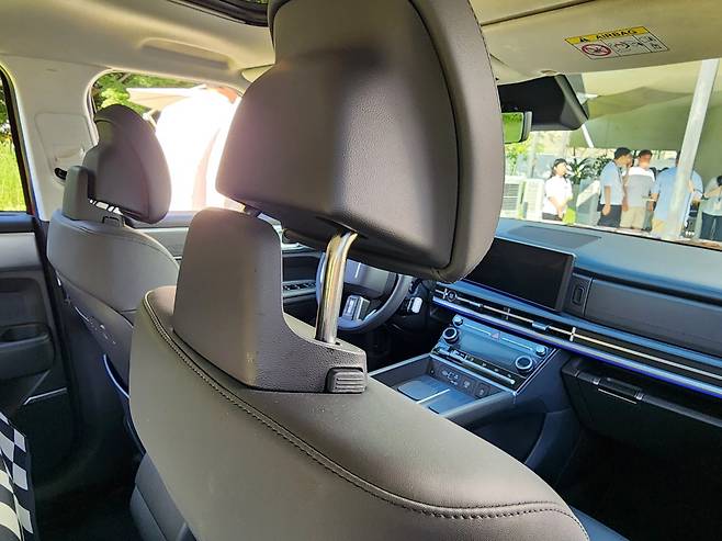 그리고 기아에서 정말 훔쳐오고 싶던 것 중 하나인 헤드레스트 뒷편에 마련된 다용도 걸이가 싼타페에서도 생겼습니다. 그런데 말입니다..