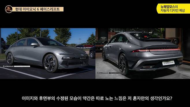 다만 전면부 디자인 변화가 크지 않아 한편에서는 전/후면부 디자인이 조화롭지 못하다는 지적도 나온다. 하지만 전반적으로 부족했던 후측면부 디자인 완성도가 높아질 것으로 기대된다. 더 자세한 디자인은 아래 영상으로 확인할 수 있다.