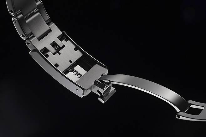새로운 블랙 베이에는 기본적으로 브러시드 가공한 3열 스테인리스 스틸 브레이슬릿, 브러시드와 폴리시드로 교차 가공한 주빌리 브레이슬릿, 러버 스트랩을 장착할 수 있습니다. 러버 스트랩의 경우 3가지 사이즈로 출시됩니다. 러버 스트랩 안쪽에는 미끄러짐을 방지하기 위해 스노우플레이크 패턴이 채워져 있습니다. 모든 스트랩 및 브레이슬릿에는 별도의 도구 없이 최대 8mm까지 길이를 미세하게 조절할 수 있는 T-핏(T-Fit) 클라스프가 연결되어 있습니다. 클라스프가 접히고 풀리는 곳에는 세라믹 볼 베어링을 삽입해 조작감이 부드럽고 한 번 잠그면 잘 풀리지 않아 안전하게 시계를 착용할 수 있습니다.
