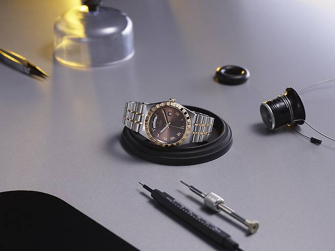 브러시드 가공한 리벳 스타일 3열 스테인리스 스틸 브레이슬릿이 독특한 분위기를 더해줍니다. 보다 가볍고 경쾌한 러버 스트랩도 매칭할 수 있습니다. 모두 미세 조절이 가능한 T-핏(T-Fit) 클라스프가 연결되어 있습니다.
