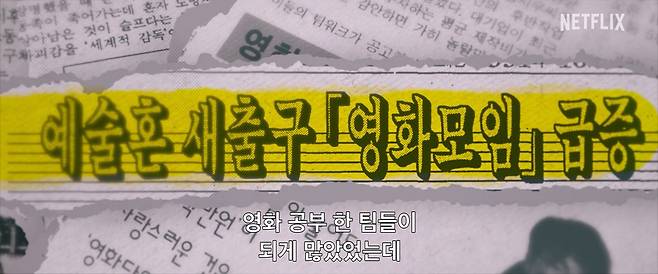 1990년대 초, 시네필들의 공동체였던 '노란문 영화 연구소'의 회원들이 30년 만에 떠올리는 영화광 시대와 청년 봉준호의 첫 번째 단편 영화를 둘러싼 기억을 따라가는 다큐멘터리 영화 <노란문: 세기말 시네필 다이어리>가 10월 27일 넷플릭스를 통해 공개됐습니다.