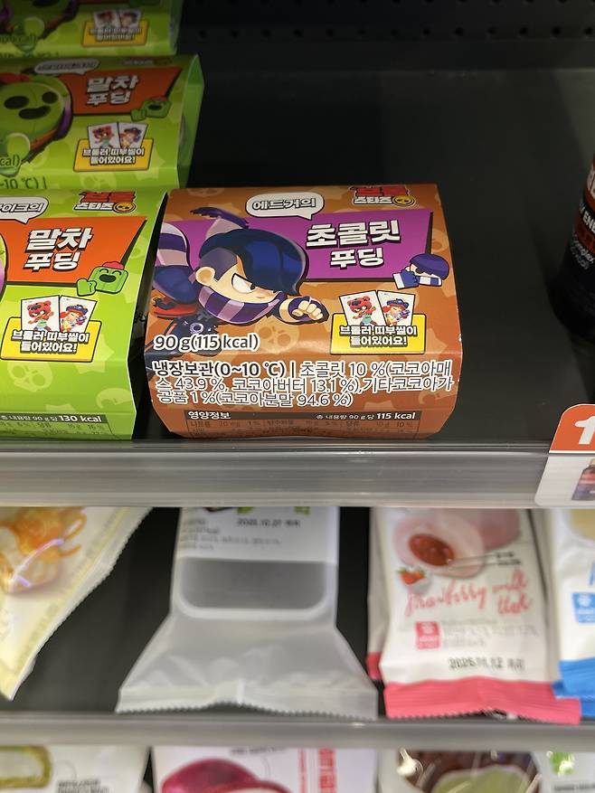 CU 한정 브롤스타즈 × 에드거 콜라보 초콜릿푸딩으로, 달콤한 가나풍 초콜릿 맛이 특징이에요.