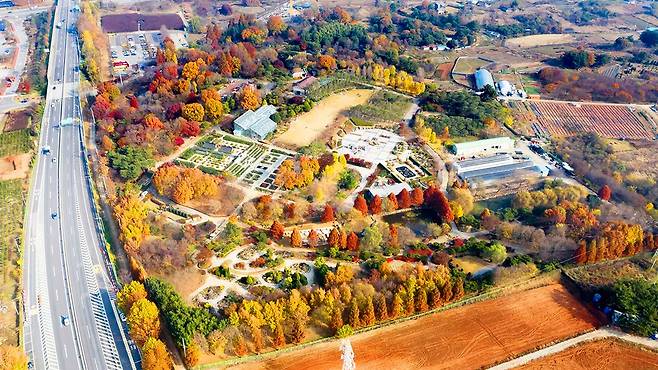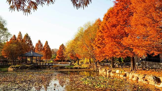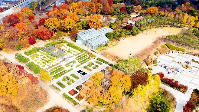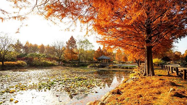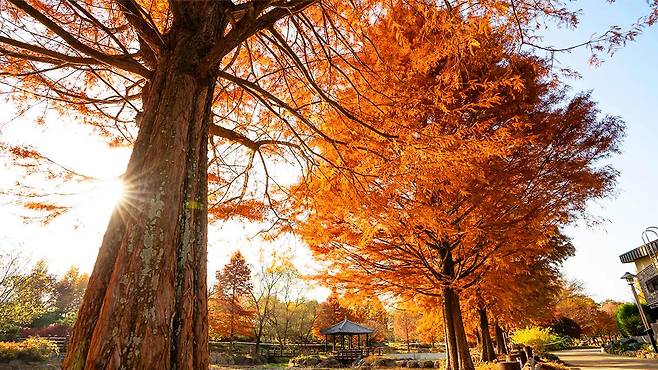 약 29만㎡ 규모의 부지에는 24개의 테마 정원이 자리하고 있어 어디를 걷든 오색빛으로 물든 나무들이 반깁니다.