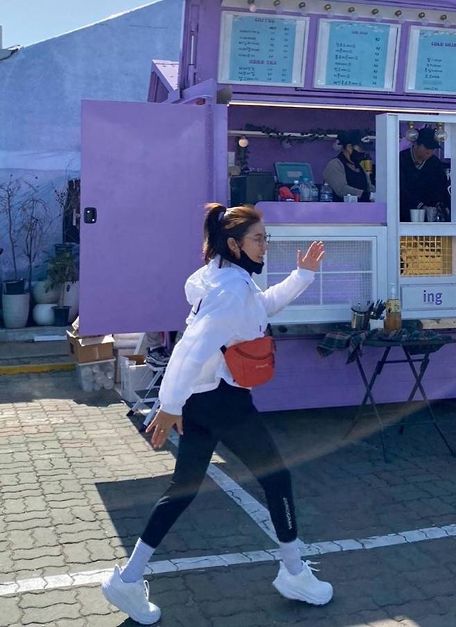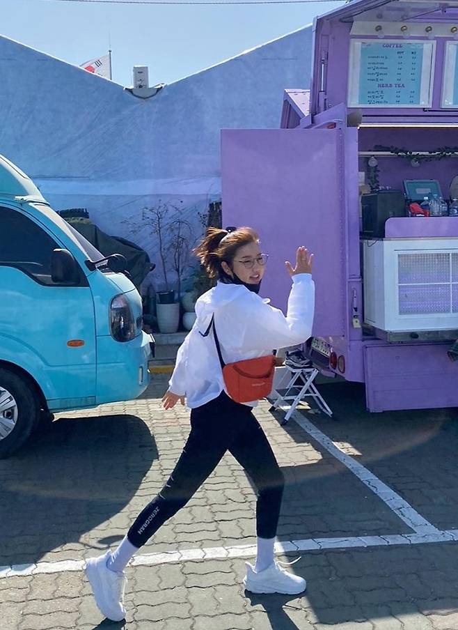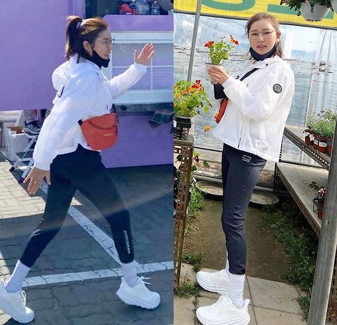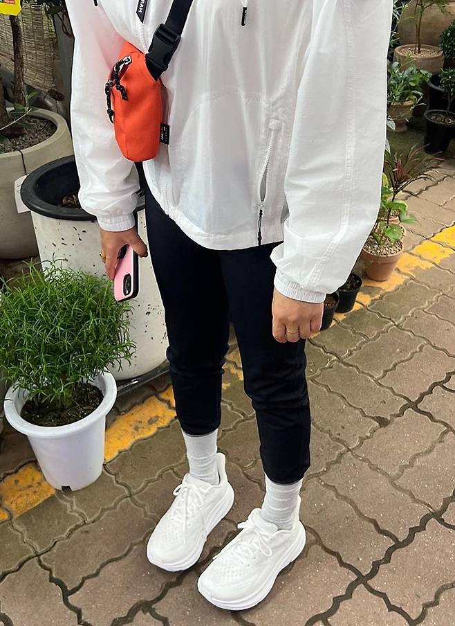 공개한 사진에서 송가인은 대충 올려 묶은 머리에 블랙 스키니와 화이트 바람막이 재킷을 입고 오렌지 슬링백을 매치한 발랄하면서도 큐티한 꾸안꾸 나들이룩을 선보였다.