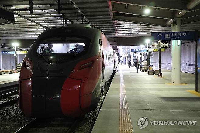 (강릉=연합뉴스) 류호준 기자 = 1일 오전 강원 강릉역에 부산(부전)으로 향하는 'ITX-마음'이 정차해 있다.