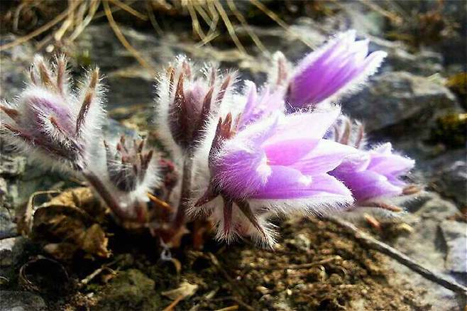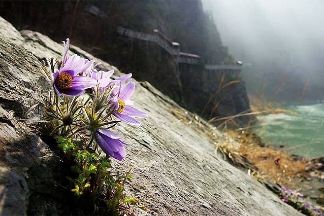 동강할미꽃은 세계에서 유일하게 한국, 그중에서도 정선 동강의 석회암 지대 절벽에서 자생하는 희귀 식물이다.