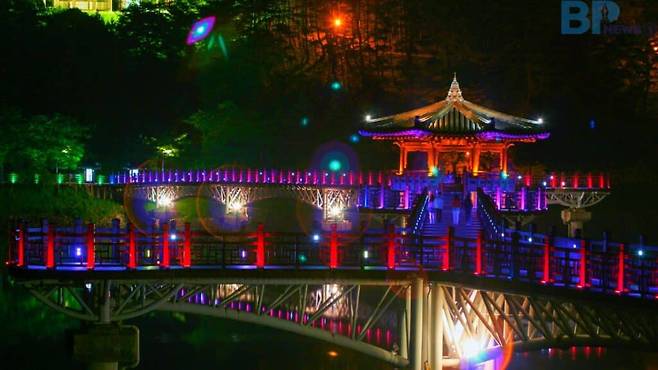 경상북도 안동시 상아동 569에 위치한 ‘월영교’는 낙동강 위를 가로지르는 국내 최장 길이의 목조다리다.
