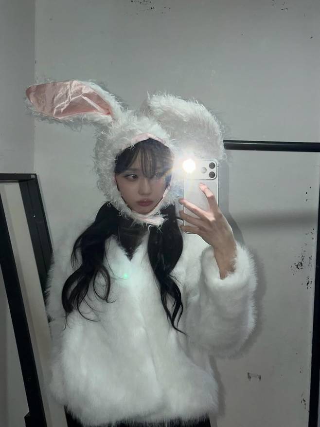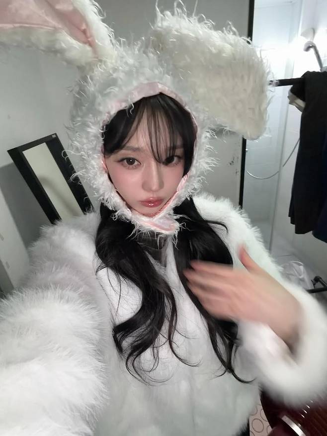 공개된 사진 속 윈터는 복슬복슬한 흰 털의 토끼 의상을 착용한 채 다양한 셀카를 남겼다. 커다란 귀가 달린 후드와 털 소재 상의는 사랑스러움을 배가시켰으며, 긴 흑발 웨이브와 자연스러운 메이크업이 인형 같은 분위기를 자아냈다.