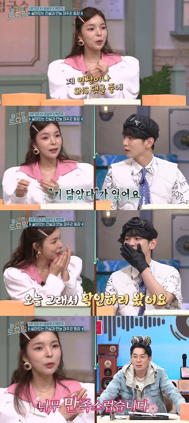 이날 박진주는 '놀토' 멤버 중 키를 만나고 싶었다는 마음을 전했다. 댓글 중에 키 닮았다는 말이 많았기 때문이다. 이에 그는 "시청자 여러분께 말하고 싶은 것이 실물 보면 깜짝 놀란다"고 키의 실물을 보고 기뻐했다.