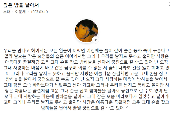 가수 이문세의 곡 ‘깊은 밤을 날아서’의 가사