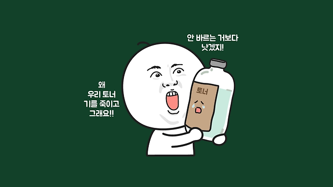 얼굴을 닦아내는 클렌징부터 시작해서 일련의 순서에 따라 화장품을 발라 가며 피부를 가꾸는 방법을 스킨케어라고 합니다. 사람에 따라 방법에 차이가 있긴 해도 토너나 스킨(*이하 '토너'로 통일)을 바른 다음에 로션을 바르는 것까지는 피부 관리에 관심 없는 사람들도 따릅니다.