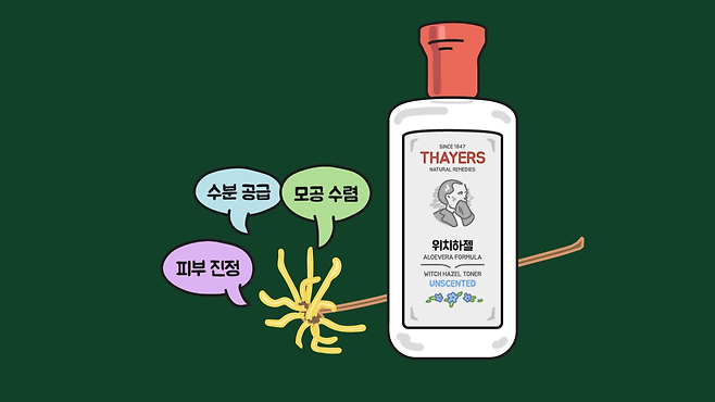 그리고 19세기 후반부터 지금까지 판매되는 'Thayers Witch Hazel'이라는 제품도 '위치하젤(Witch Hazel)'이라는 성분이 피부를 진정시키고, 피부에 수분을 공급하는 효과가 있다고 광고됐습니다.