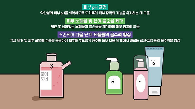 또 클렌저도 발달하여 노폐물을 효과적으로 제거할 수 있으므로 노폐물 제거를 위해서 굳이 토너를 사용할 필요도 없어졌습니다.