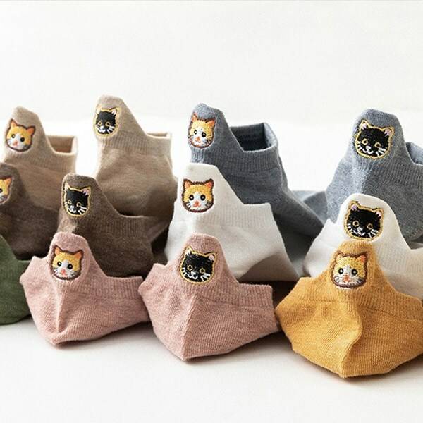 이 제품은 발뒤꿈치 쪽에 고양이 자수가 있는 양말이에요. 다섯 켤레가 한 세트로, 데일리로 신기에도 좋답니다. 반스나 컨버스 로우처럼 목이 낮은 운동화를 신을 때 포인트를 줄 수 있어 좋답니다.