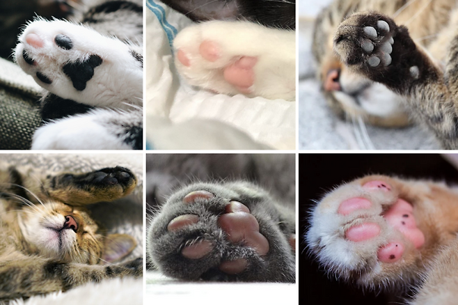 그리고 고양이 발 털 색깔에 따라 발바닥 젤리 색깔도 조금씩 달라요. 대부분 분홍색이 많고, 검은색, 갈색, 분홍색과 갈색이 섞인 경우도 있어요.