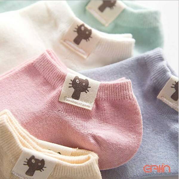 고양이 라벨이 붙은 발목 양말이에요. 색상이 다양해서 데일리로 신기 좋고, 면 소재라 사계절 내내 신기에도 좋답니다.