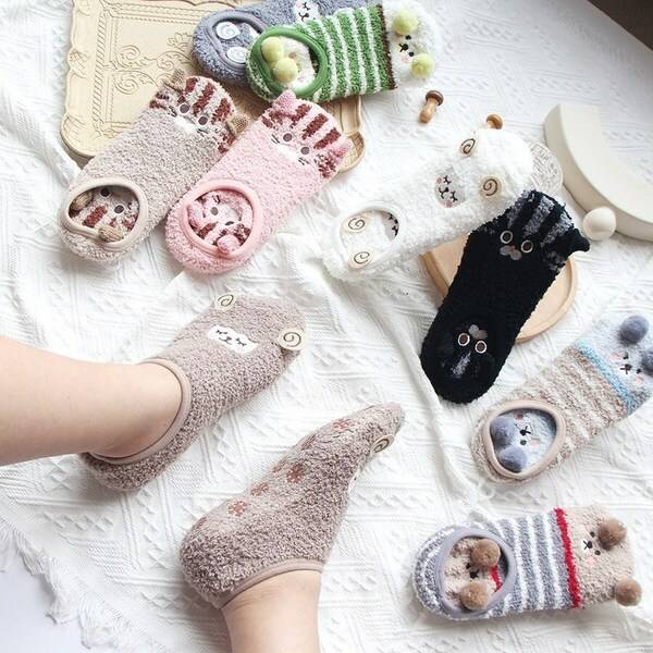 빅걸스토리 여성 동물 캐릭터 양털 수면 덧신 양말