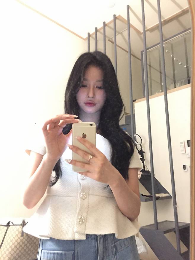 포인트인 진주 버튼 상의는 말 그대로 ‘공주님 룩’의 완성입니다.