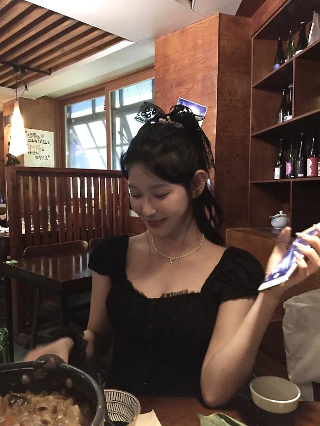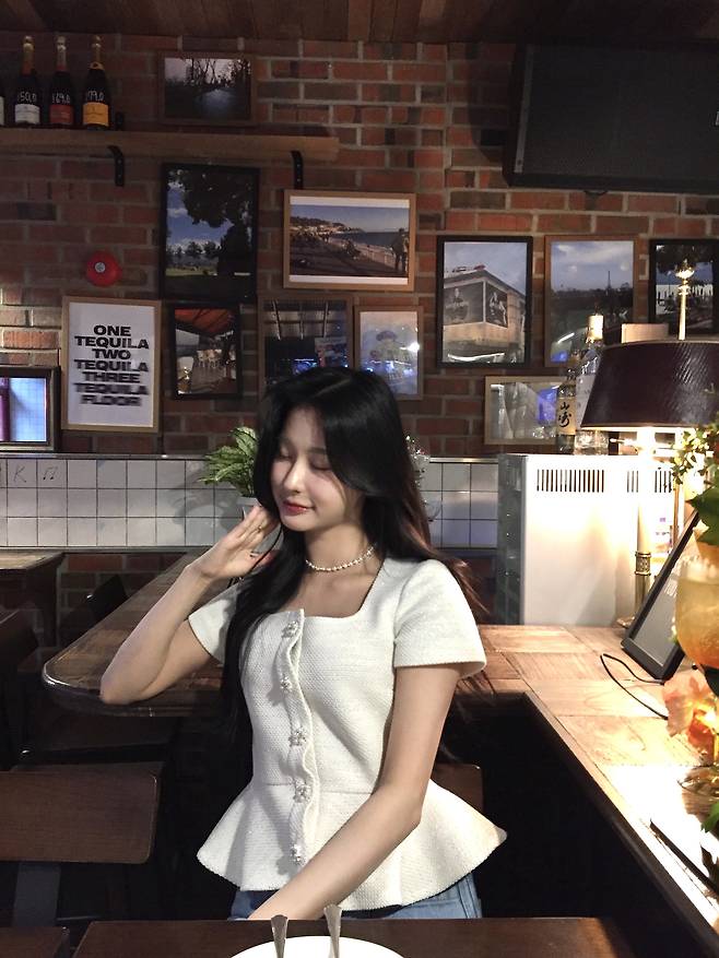 목걸이 대신 카라 자체를 포인트로 살리는 전략을 택했어요.