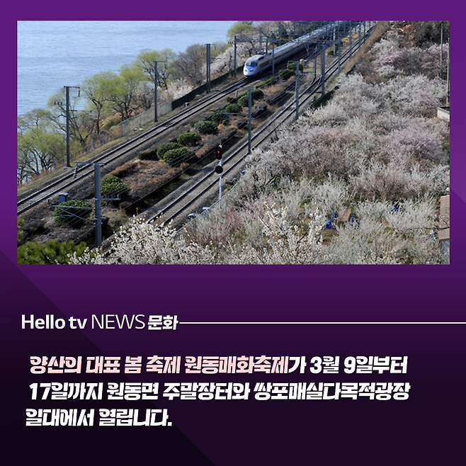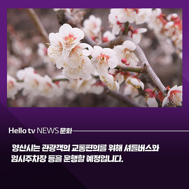 양산의 대표 봄 축제인 원동매화축제가 다음 달 9일부터 17일까지 원동면 주말장터와 쌍포매실다목적광장 일대에서 열립니다.