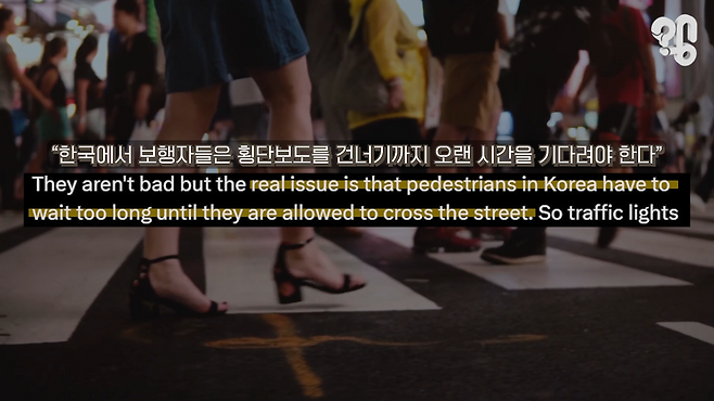 한국에 온 외국인들이 종종 불평하는 것 중 하나가 이 횡단보도다. 길을 건너려고 초록불을 기다리는 데 외국에 비해 너무 오래 걸린다는 얘기다. 길 하나 건너는 데 횡단보도에서 3분 넘게 기다리는 건 해도해도 선넘은 거 아니냐는 이런 반응들. 유튜브 댓글로 “우리나라 신호등은 초록불 기다리는 시간이 유독 길다는데 이유가 뭔지 알아봐달라”는 의뢰가 들어와 취재했다.