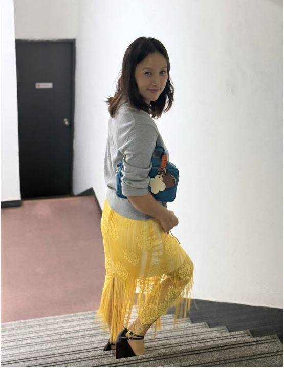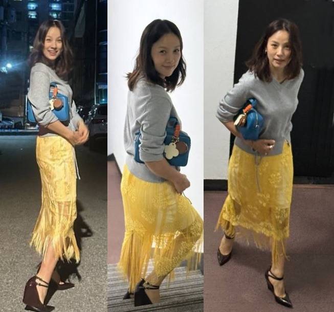 이날 이효리는 그레이 니트와 옐로 프린지 장식의 시스루 스커트, 여기에 와인 하이힐, 유니크한 블루 클러치백을 매치한 생기넘치는 자신만의 감각을 더한 하객 패션으로 주목을 끌었다.