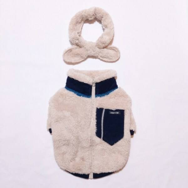 도기스타 긴팔 강아지후리스 집업+털목도리세트
