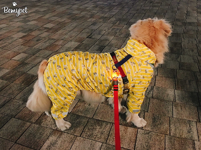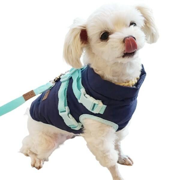 발열 기능성 강아지 패딩으로 매우 따뜻해요. 패딩에 하네스가 달려 있어, 옷을 입히고 하네스를 착용하는 번거로움이 없어 좋습니다. 지퍼가 등 쪽에 있고, 하네스도 튼튼하게 달려 있어서 산책 시 쉽게 벗겨지지 않습니다.