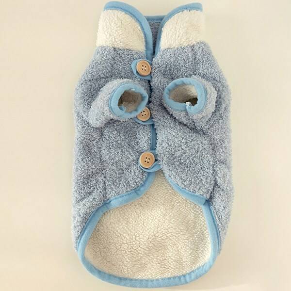 뽀글이 소재의 캐주얼한 강아지 코트입니다. 뽀글이 소재라 부드럽고 따뜻해서 겨울철에 입히기 좋아요. 마감 처리도 탄탄한 편이라 내구성도 좋아요. 색상은 귀여운 파스텔 색감의 블루, 그린, 핑크 세 가지가 있습니다.