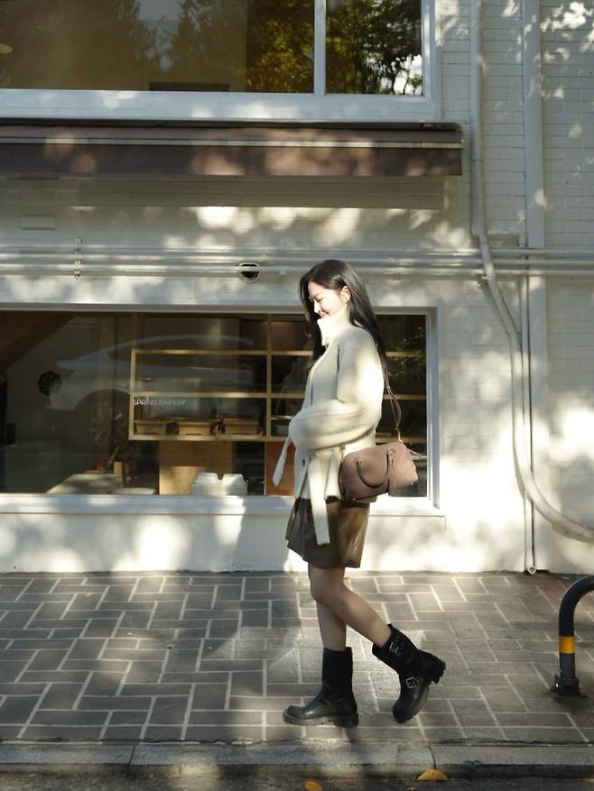 브라운 숄더백까지 더해지니, 전체적인 톤이 하나로 안정적으로 연결돼요.