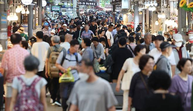 [추석 연휴를 약 2주 앞둔 2일 오후 서울 청량리종합시장을 방문한 시민들이 장을 보고 있다. (사진=연합뉴스)]
