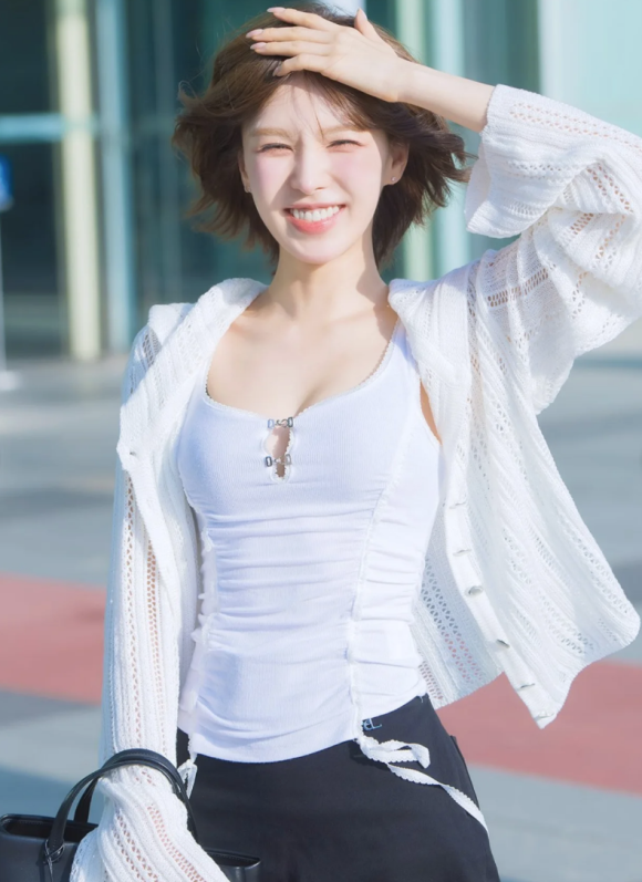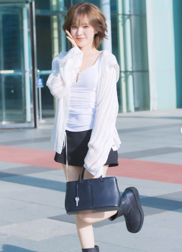 청순한 외모와 반전 있는 스타일링 감각이 어우러지며 '레전드 출근룩'으로 많은 팬들의 주목을 받았다.