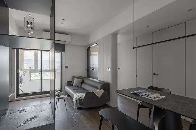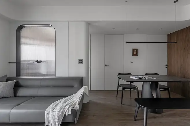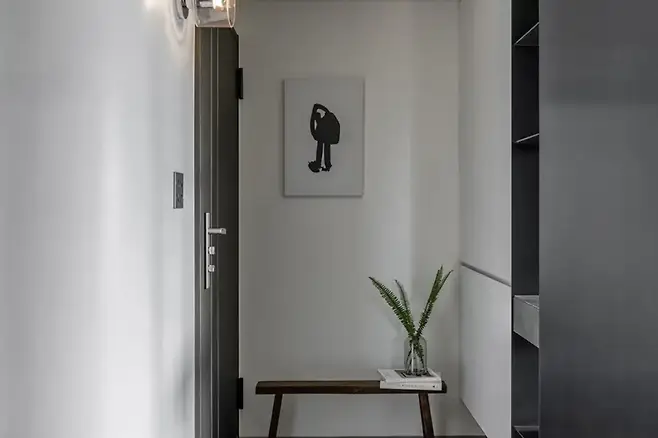 현관에 발을 들이는 순간부터 차분한 분위기가 스며든다. 블랙, 화이트, 그레이로 구성된 중성 팔레트는 과한 장식을 배제하고, 조용한 질서를 만든다.