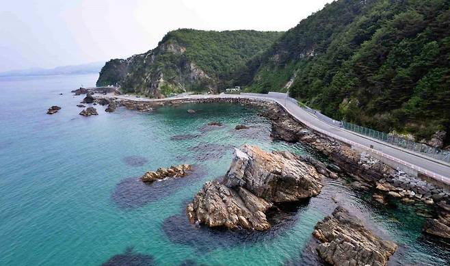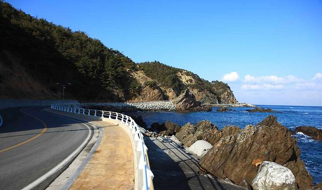 헌화로는 금진해변에서 시작해 심곡항을 지나 정동진항까지 이어지는 약 10km의 해안 드라이브 코스다. 특히 금진해변에서 심곡항으로 이어지는 구간이 핵심 구간으로 꼽힌다. 절벽과 바다가 맞닿은 구불구불한 해안선을 따라 달리면, 도로 한쪽으로는 설화 속 철쭉이 피었을 법한 바위 절벽이, 다른 한쪽으로는 끝없이 이어지는 파란 바다가 펼쳐진다. 난간 높이는 약 70cm에 불과해 달리는 내내 시야를 가리지 않고 바다를 정면으로 마주할 수 있다.