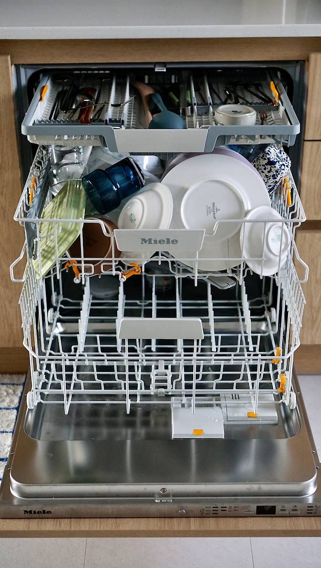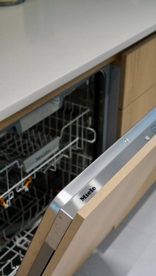 하부장 중간 쯤에 식세기가 숨어있는데요. 밀레 식세기 16인용이에요. 식세기에 도어는 인테리어 업체에서 제작만 해주시고 도어 부착은 식세기 업체에서 해주셨어요.