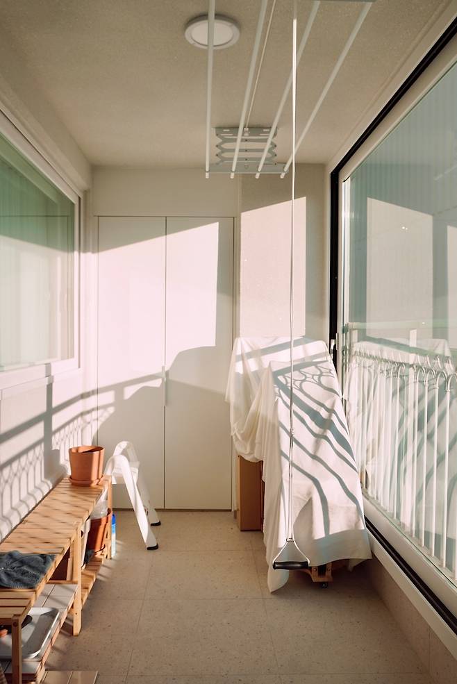 이 아파트의 또 하나의 특징은 앞&뒤 베란다가 모두 넓다는 점이에요. 베란다가 넓으니 안 쓰는 짐 보관하는게 훨씬 수월해 졌어요.