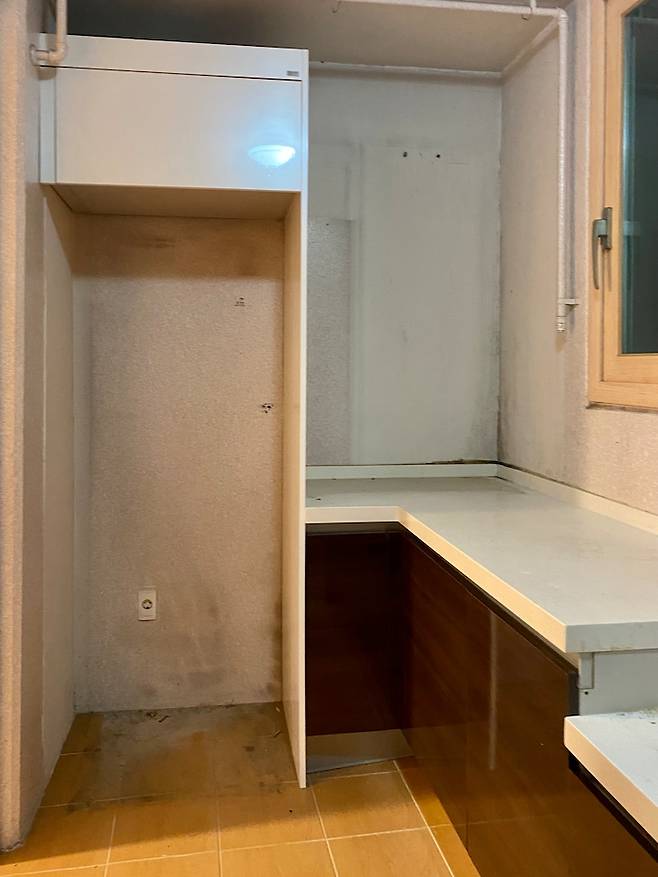 뒷 베란다는 원래 서브냉장고 자리와 보조주방이 있는 구조였어요.