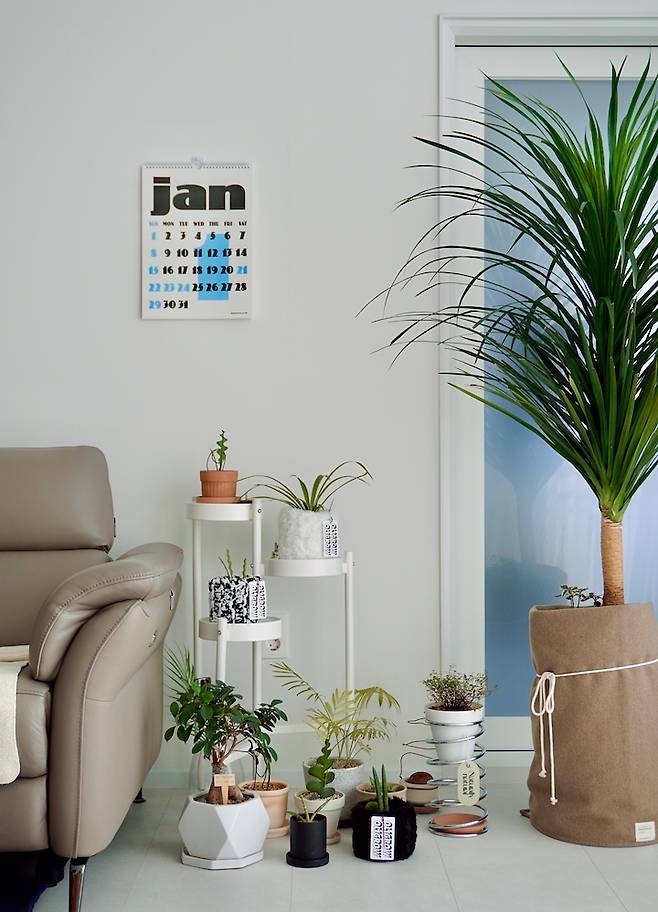 소파 옆에는 이렇게 작은 식물들이 모여 마을을 이루고 있습니다. 넘나 귀여운 것>_< 드라코는 신혼 때부터 선물 받아 벌써 3년 동안 무럭무럭 자라나 저보다 커졌구요.