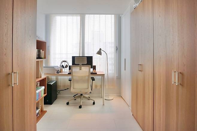 작업실에도 수납이 두 군데나 있어 정말 넉넉하게 사용 중이에요. 이 집은 정말 수납력이 좋은 집이에요.