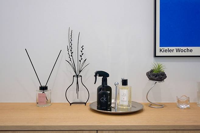 가구 위에는 향수와 몇 가지 오브제들로 꾸며보았어요. 저는 오브제를 많이 두는 것 보다 빈 공간이 적당히 있는 걸 더 선호하는 스타일 이랍니다!