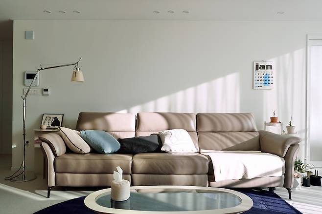 이 소파도 그대로 함께하고 있는데요. 리클라이너 기능이 있는 가죽 소파로 관리하기 편하고 정말 10년은 거뜬히 쓸 수 있을 것 같은 그런 트랜스 포머같은 느낌이랄까요.. 소파 양 옆 부분엔 USB단자가 있어 케이블로 충전이 가능해요.