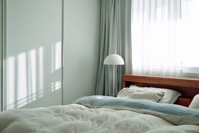 침대 프레임과 높이가 딱 맞는 창문이 보이시죠? 매트리스와 프레임도 전에 쓰던 것을 가지고 왔고, 침구는 한번 산뜻한 걸로 바꾸어주었습니다.