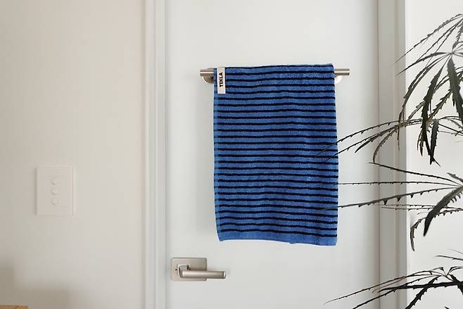 거실 수건은 테클라 제품으로 구매해보았는데 크기가 다른 수건보다 크고 가운데 걸이가 있어서 주방 수건처럼 걸어서도 쓸 수 있어요.