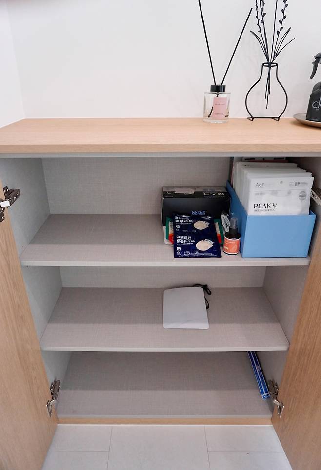 다른 곳에 수납이 넉넉해서 이 공간은 아직 비어 있구요.. 마스크 하나 뜯어 쓰고 나갈 때나 핫팩 하나씩 들고 나갈 때 유용한 공간이랍니다.