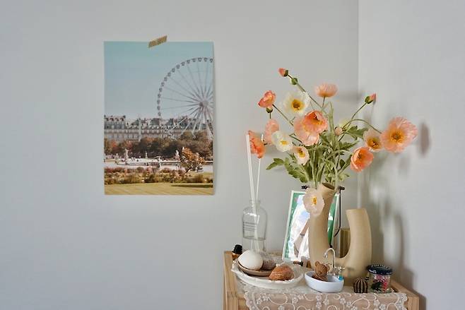한 쪽에 포스터와 오브제들로 빈 공간을 꾸며보았어요.