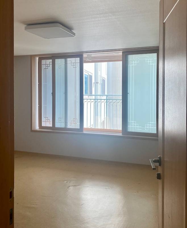 시공 전 침실은 구축의 특유의 특징인 긴 창문을 가지고 있었어요.