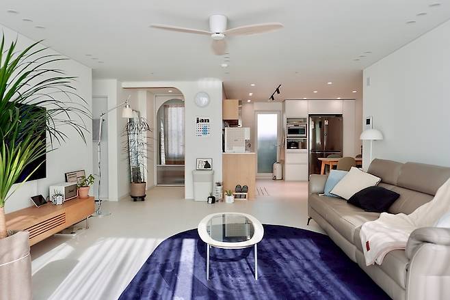 창문 쪽에서 거실을 바라본 모습이에요. 저는 식집사라 일조량과 통풍이 잘 되는 지가 정말 중요했는데 이 전집은 남향이긴 했지만 겨울에 통풍을 잘 못 시켜 주어서 식물들에게 미안했거든요! 이번엔 실링팬을 설치하게 되어서 통풍도 문제없고 찐 남향 집이라 일조량도 좋아서 식물들을 잘 키워낼 수 있을 것 같습니다.