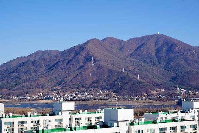 예봉산이 정말 가까이서 보이죠? 파란 하늘과 밑으로 흐르는 한강까지 바라보고 있으면 눈이 시원해지는 풍경이에요.