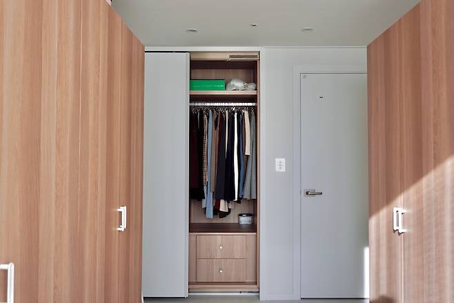 작업실에도 수납이 두 군데나 있어 정말 넉넉하게 사용 중이에요. 이 집은 정말 수납력이 좋은 집이에요.