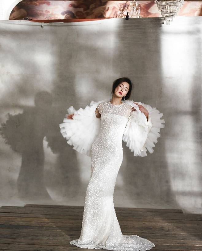 전지현의 엘르 웨딩화보였어요.